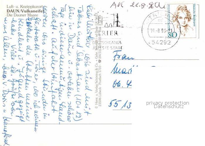 72909055 alte Postkarte Daun Eifel Dauner Maare Fliegeraufnahme postalisch gelaufen Erhaltung siehe scans [FriedD77] KatCode: 11110007233501