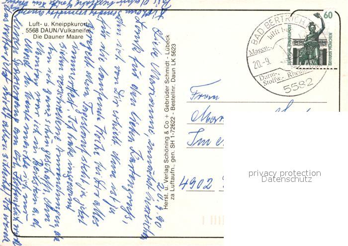73018428 alte Postkarte Daun Eifel Die Dauner Maare Fliegeraufnahme postalisch gelaufen Erhaltung siehe scans [WerneD78] KatCode: 11110007233501