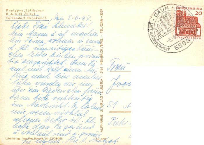 73886332 alte Postkarte Daun Eifel Feriendorf Drankehof Fliegeraufnahme postalisch gelaufen Erhaltung siehe scans [WerneD78] KatCode: 11110007233501