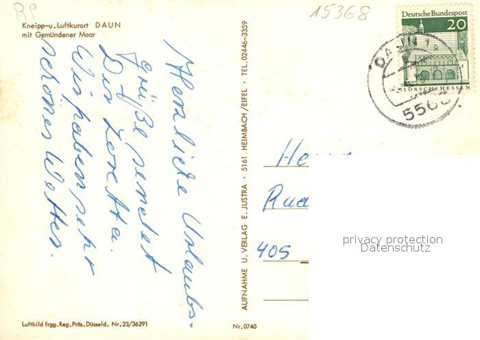 73541212 alte Postkarte Daun Eifel Fliegeraufnahme mit Gemuendener Maar postalisch gelaufen Erhaltung siehe scans [WerneD78] KatCode: 11110007233501