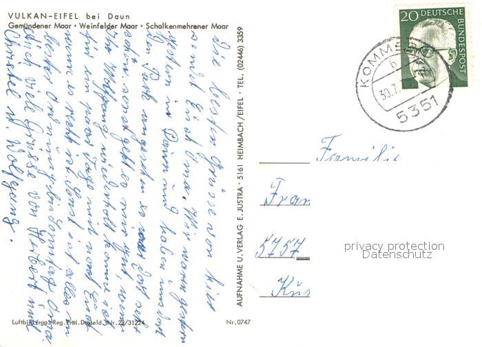 72989621 alte Postkarte Daun Eifel Fliegeraufnahme mit Gemuendener Weinfelder und Schalkenmehrener Maar postalisch gelaufen Erhaltung siehe scans [WerneD78] KatCode: 11110007233501