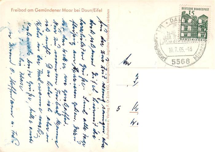 73877355 alte Postkarte Daun Eifel Freibad am Gemuendener Maar postalisch gelaufen Erhaltung siehe scans [WerneD78] KatCode: 11110007233501