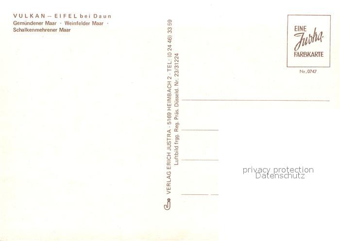 73170421 Daun Eifel Gemuendener Maar Weinfelder Maar Schalkenmehrener Maar Fliegeraufnahme postalisch nicht gelaufen Erhaltung siehe scans [FriedD77] KatCode: 11110007233501