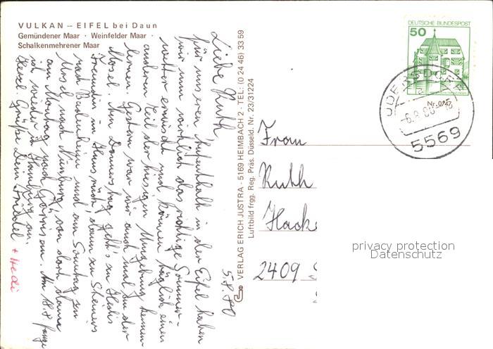 72481047 alte Postkarte Daun Eifel Gemuendener Weinfelder Schalkenmehrener Maare postalisch gelaufen Erhaltung siehe scans KatCode: 11110007233501