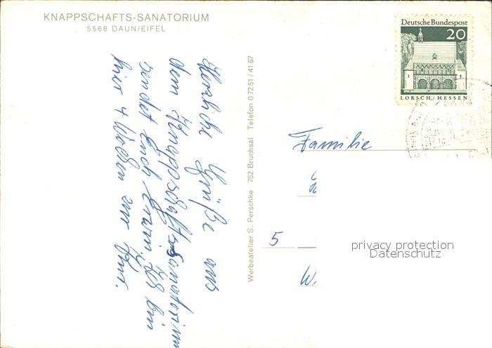 72496043 alte Postkarte Daun Eifel Knappschaftssanatorium postalisch gelaufen Erhaltung siehe scans KatCode: 11110007233501