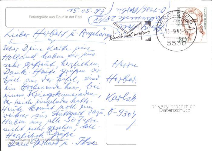 72370271 alte Postkarte Daun Eifel Stadttor See Luftaufnahme Maare postalisch gelaufen Erhaltung siehe scans KatCode: 11110007233501