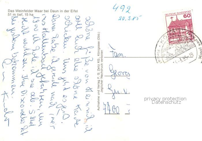 73606356 alte Postkarte Daun Eifel Weinfelder Maar postalisch gelaufen Erhaltung siehe scans [LiesaD40] KatCode: 11110007233501