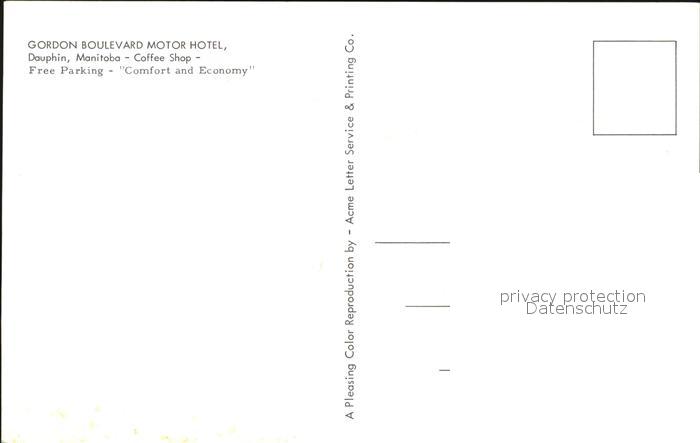 Dauphin Manitoba Gordon Boulevard Motor Hotel postalisch nicht gelaufen Erhaltung siehe scans