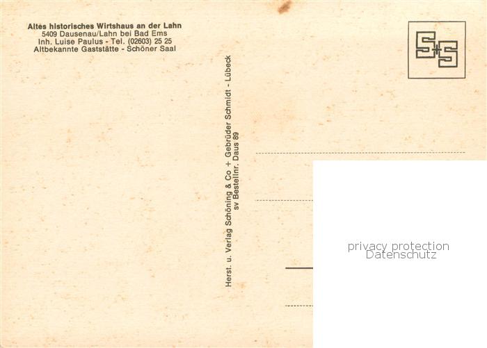 73780458 Dausenau Altes historisches Wirtshaus an der Lahn Gaststube Stadttor postalisch nicht gelaufen Erhaltung siehe scans [WerneD78] KatCode: 11110007141025