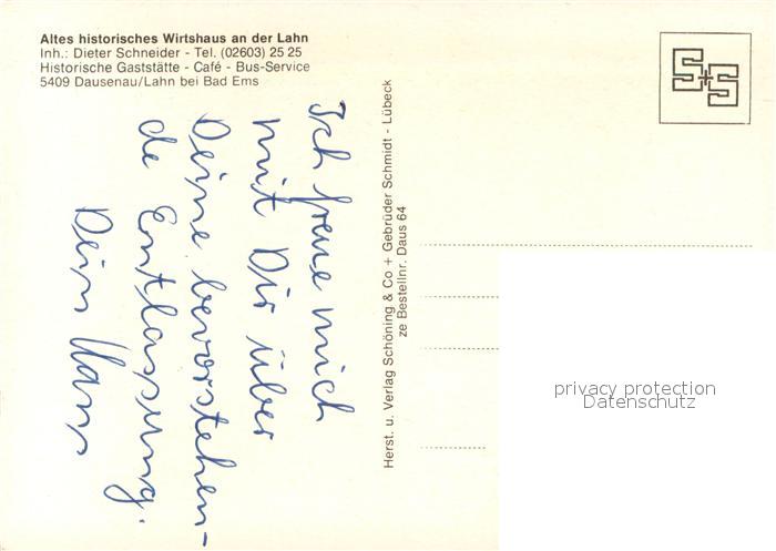73741782 alte Postkarte Dausenau Historisches Wirtshaus an der Lahn postalisch gelaufen Erhaltung siehe scans [WerneD78] KatCode: 11110007141025