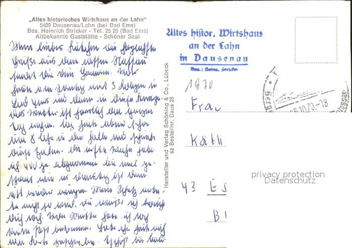 72182961 alte Postkarte Dausenau Wirtshaus an der Lahn postalisch gelaufen Erhaltung siehe scans KatCode: 11110007141025