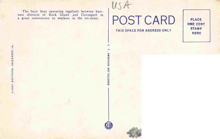 73972867 Davenport Iowa Skyline of Davenport Ferry Boat between Rock Island Illustration postalisch nicht gelaufen Erhaltung siehe scans [FriedD77] KatCode: 14140170000000