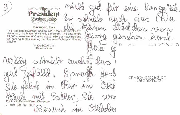 72837333 Davenport Iowa The President Riverboat Casino postalisch nicht gelaufen Erhaltung siehe scans [FriedD77] KatCode: 14140170000000