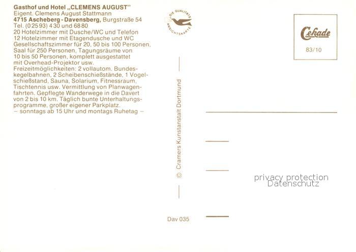 73324881 Davensberg Gasthaus Hotel Clemens August postalisch nicht gelaufen Erhaltung siehe scans [LiesaD40] KatCode: 11110005558004