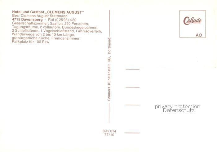 73542813 Davensberg Hotel Gasthof Clemens August Restaurant Kegelbahn postalisch nicht gelaufen Erhaltung siehe scans [FriedD77] KatCode: 11110005558004