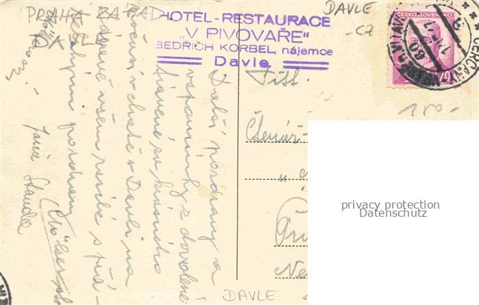 74059604 old postcard Davle Dawle PRAHA Prag Prahy Prague Hotel Restaurant Pivovare Kuenstlerkarte postalisch gelaufen Erhaltung siehe scans [FriedD77] KatCode: 11520