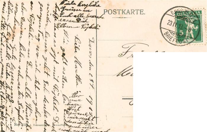 13920365 alte Postkarte Davos-Dorf GR Blick auf Tinzenhorn und Piz Michel postalisch gelaufen Erhaltung siehe scans [FriedD77] KatCode: 11470100350342