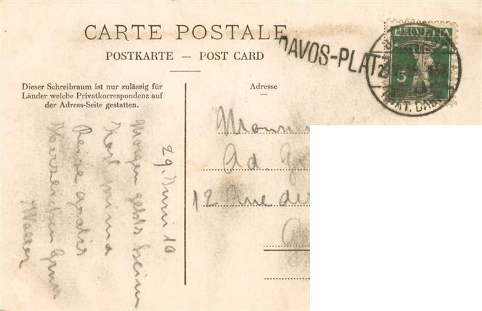 13970420 alte Postkarte DAVOS GR Blick vom Hôtel Belvedere gegen Tinzenhorn postalisch gelaufen Erhaltung siehe scans [FriedD77] KatCode: 11470100350342