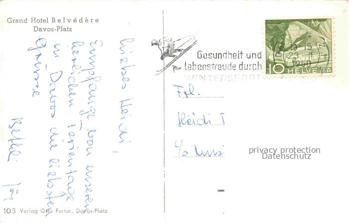 34144534 alte Postkarte DAVOS GR Grand Hotel Belvedere Wintersportplatz Alpen postalisch gelaufen Erhaltung siehe scans [FriedD77] KatCode: 11470100350342