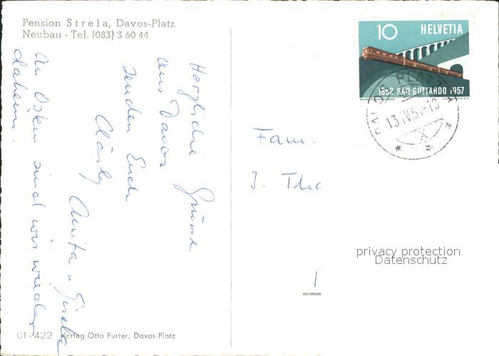 11655833 alte Postkarte Davos GR Pension Strela postalisch gelaufen Erhaltung siehe scans KatCode: 11470100350342