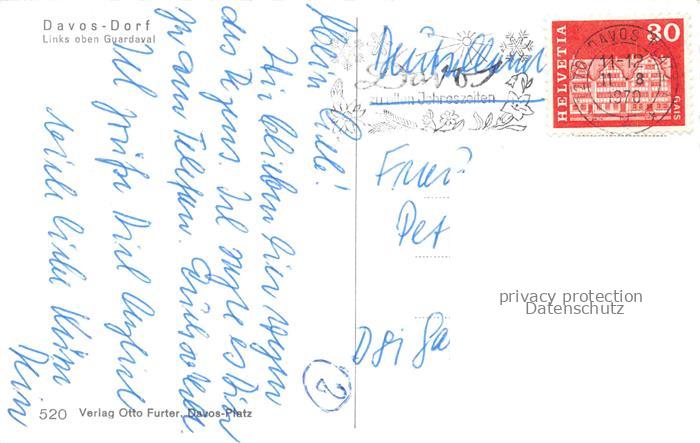 34144612 alte Postkarte DAVOS GR Teilansicht mit Hotel Guardaval postalisch gelaufen Erhaltung siehe scans [FriedD77] KatCode: 11470100350342