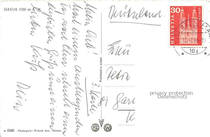 34145439 alte Postkarte DAVOS GR Teilansicht postalisch gelaufen Erhaltung siehe scans [FriedD77] KatCode: 11470100350342