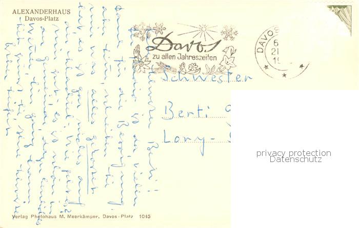 13850880 alte Postkarte Davos-Platz GR Alexanderhaus postalisch gelaufen Erhaltung siehe scans [FriedD77] KatCode: 11470100350342