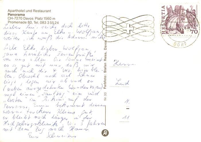 13886566 alte Postkarte Davos-Platz GR Aparthotel und Restaurant Panorama postalisch gelaufen Erhaltung siehe scans [WerneD78] KatCode: 11470100350342