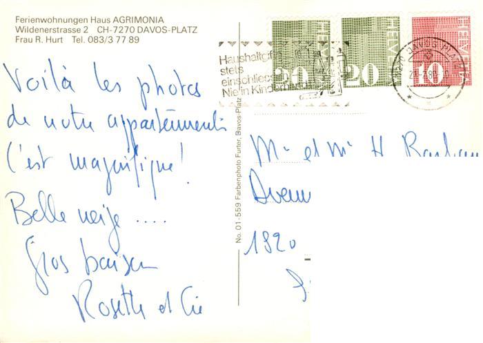 13889126 alte Postkarte Davos-Platz GR Ferienwohnungen Haus Agrimonia Appartement postalisch gelaufen Erhaltung siehe scans [WerneD78] KatCode: 11470100350342