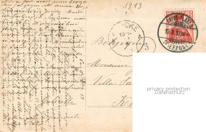 13728845 alte Postkarte Davos Platz GR Panorama mit Kirche postalisch gelaufen Erhaltung siehe scans [WerneD78] KatCode: 11470100350342
