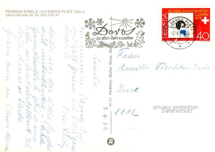 13865294 alte Postkarte Davos-Platz GR Pension Strela Wintersportplatz Alpen postalisch gelaufen Erhaltung siehe scans [FriedD77] KatCode: 11470100350342