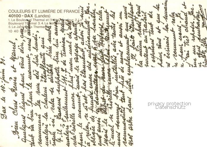 13835263 Dax 40 Landes Boulevard Thermal Hôtel Miradour Fontaine Jardin des Thermes postalisch nicht gelaufen Erhaltung siehe scans [FriedD77] Frie Katcode 11170040140088