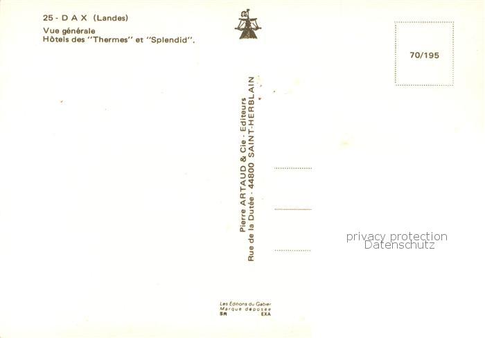 13835260 Dax 40 Landes Hôtels des Thermes et Splendid postalisch nicht gelaufen Erhaltung siehe scans [FriedD77] Frie Katcode 11170040140088