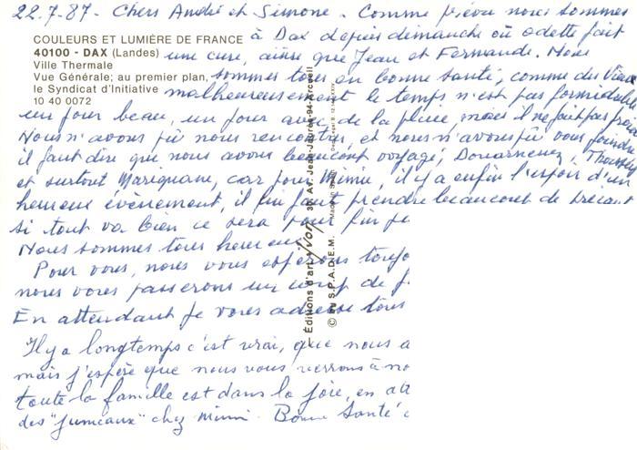 13945144 Dax 40 Landes Ville Thermale Syndicat d’Initiative postalisch nicht gelaufen Erhaltung siehe scans [FriedD77] Frie Katcode 11170040140088