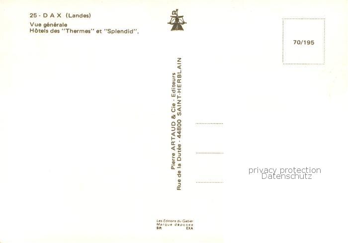 13835264 Dax 40 Landes Vue Generale Hôtels des Thermes et Splendid postalisch nicht gelaufen Erhaltung siehe scans [FriedD77] Frie Katcode 11170040140088