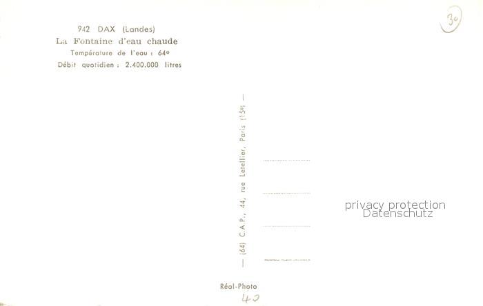 13503808 Dax Landes Fontaine d eau chaude postalisch nicht gelaufen Erhaltung siehe scans [FriedD77] KatCode: 11170040140088