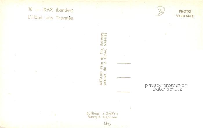 13504004 Dax Landes Hôtel des Thermes postalisch nicht gelaufen Erhaltung siehe scans [FriedD77] KatCode: 11170040140088