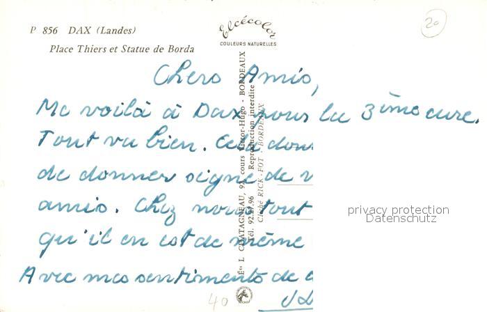 13503794 Dax Landes Place Thiers Statue de Borda Monument postalisch nicht gelaufen Erhaltung siehe scans [FriedD77] KatCode: 11170040140088