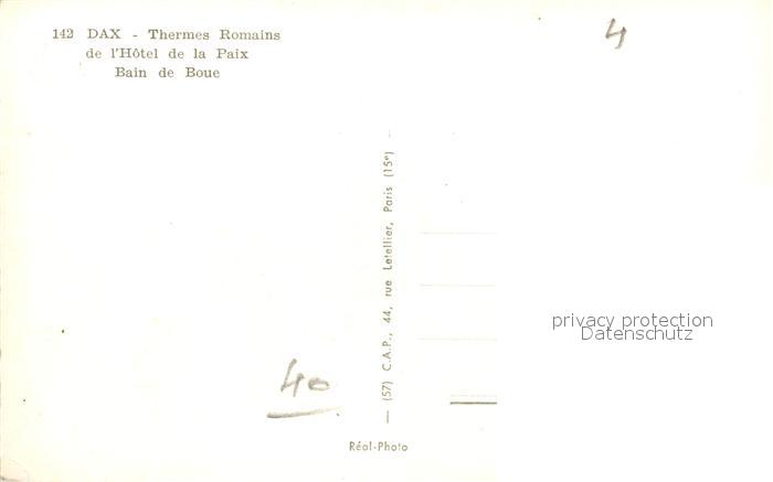 12948615 Dax Landes Thermes Romains Hotel Paix Bain de Boue postalisch nicht gelaufen Erhaltung siehe scans [NatalD47] KatCode: 11170040140088