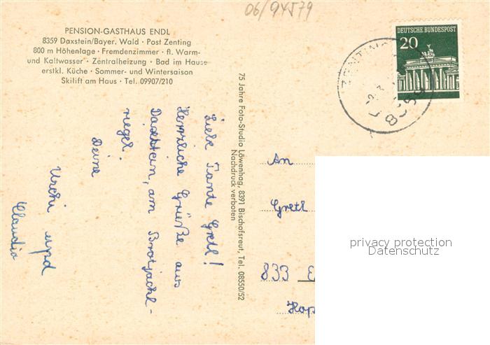 73646158 alte Postkarte Daxstein Pension Gasthaus Endl Terrasse postalisch gelaufen Erhaltung siehe scans [WerneD78] KatCode: 11110009272152