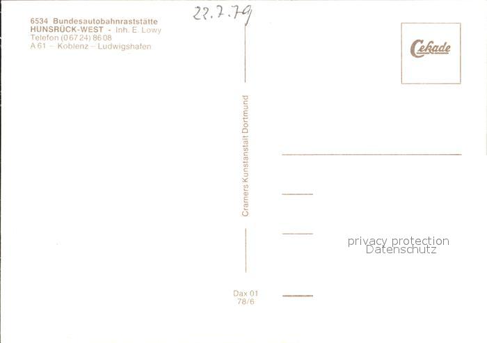 72125053 Daxweiler Bundesautobahnraststaette Hunsrueck West A 61 postalisch nicht gelaufen Erhaltung siehe scans KatCode: 11110007133023