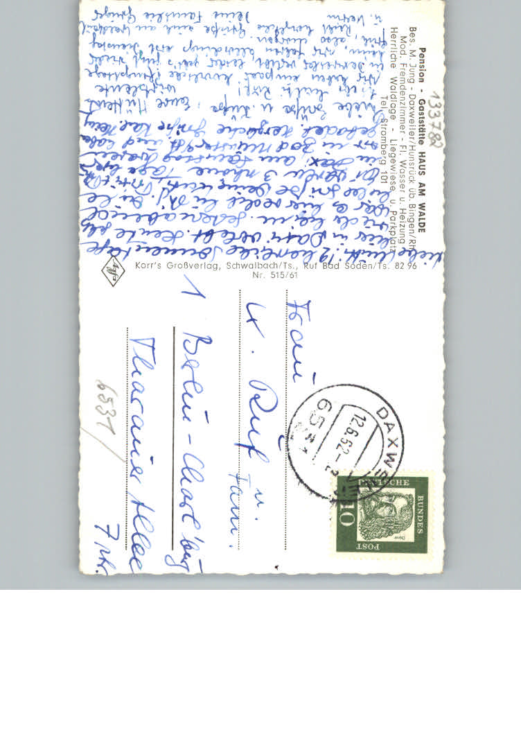 31146646 Daxweiler Gaststaette Haus am Walde postalisch nicht gelaufen KatCode: 11110007133023