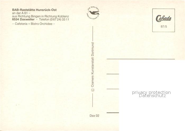73730846 Daxweiler Raststaette Hunsrueck-Ost postalisch nicht gelaufen Erhaltung siehe scans [LiesaD40] KatCode: 11110007133023