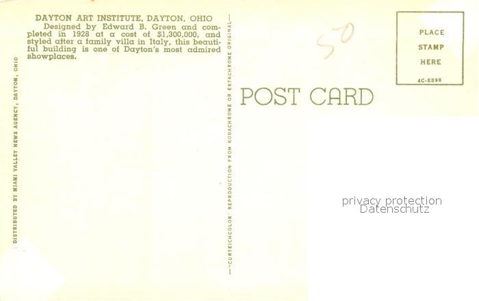 73123611 Dayton Ohio Dayton Art Institute designed by Edward B. Green postalisch nicht gelaufen Erhaltung siehe scans [FriedD77] KatCode: 14140370000000