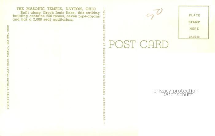 73123598 Dayton Ohio Masonic Temple postalisch nicht gelaufen Erhaltung siehe scans [FriedD77] KatCode: 14140370000000