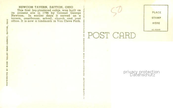 73123610 Dayton Ohio Newcom Tavern Van Cleve Park postalisch nicht gelaufen Erhaltung siehe scans [FriedD77] KatCode: 14140370000000