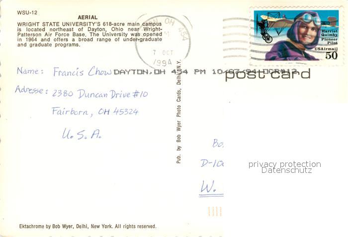 73048823 old postcard Dayton Ohio Wright State Universitys Fliegeraufnahme postalisch gelaufen Erhaltung siehe scans [WerneD78] KatCode: 14140370000000