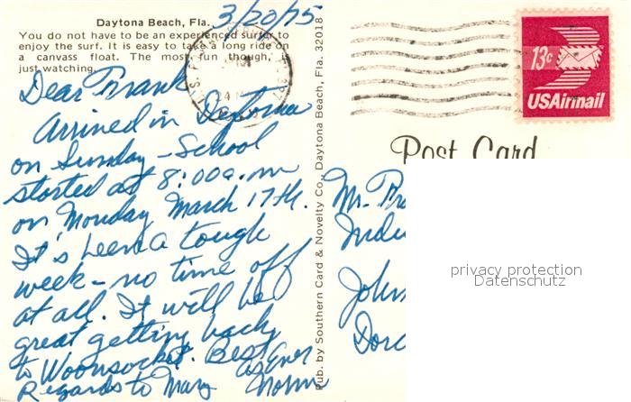 73127754 old postcard Daytona Beach Strand postalisch gelaufen Erhaltung siehe scans [KathaD81] KatCode: 14140110000000