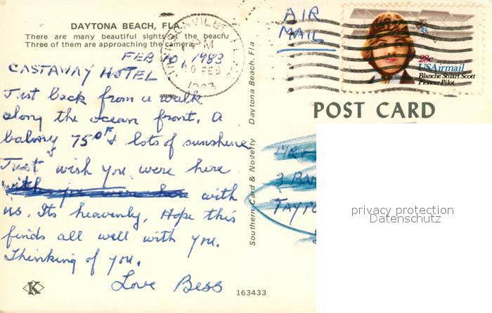 73131640 old postcard Daytona Beach Strand postalisch gelaufen Erhaltung siehe scans [KathaD81] KatCode: 14140110000000