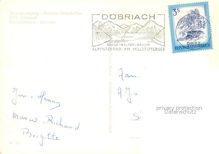 73586741 alte Postkarte D?briach Millst?ttersee Strandcamping-Pension Unterkofler postalisch gelaufen Erhaltung siehe scans [PaolaD17] KatCode: